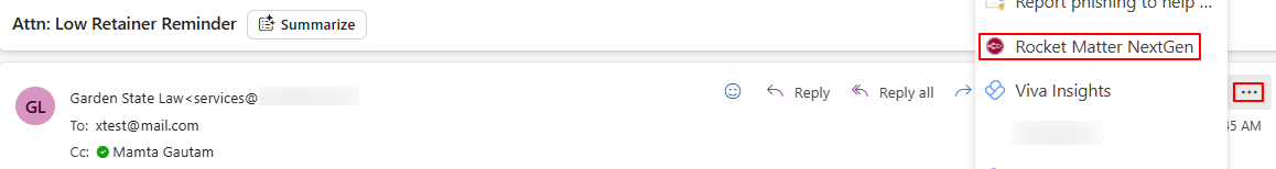 - Use the steps above to access Rocket Matter from Outlook (Desktop) or Outlook (Web).