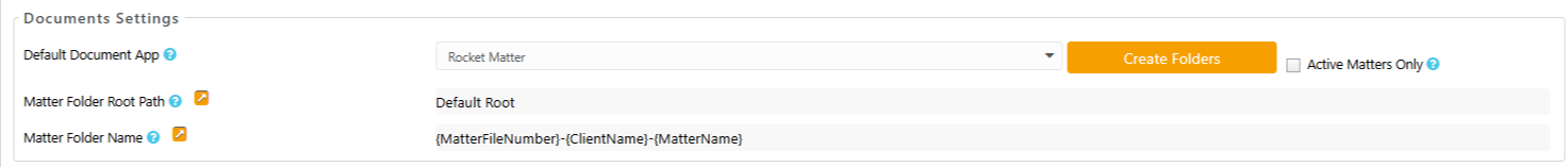 If you would like to change the default root path or folder name, you can do so under Setup>Firm Settings> Document Settings. This setting does not apply to Rocket Matter native storage.